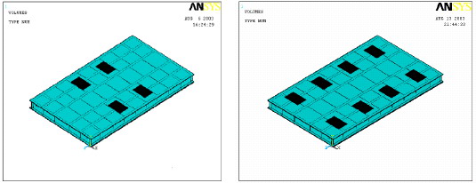 ANSYS 提供了两种生成模型的方法:实体建模和直接生成模型。由于实体建模相对处理的数据较少,便于几何改进和单元类型的变化,这也便于下一步的优化设计。对于庞大或复杂的模型,尤其是三维实体模型更加适合,所以对于汽车衡秤台的刚度校核我们采用实体建模。
