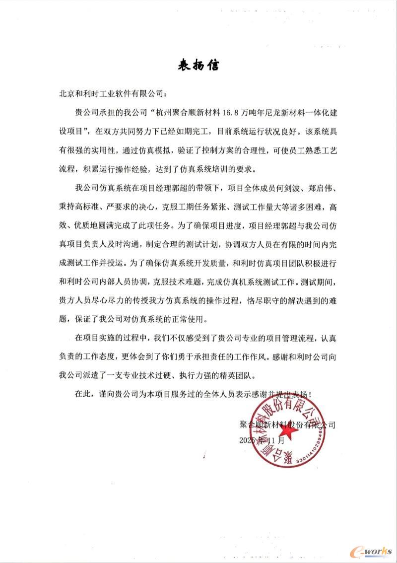双方的合作,使“智能工厂”建设从概念层面,落地为基于模型、可验证、可迁移的工程化技术体系。依托 OTS+Batch 融合方案,杭州聚合顺构建起面向尼龙新材料装置的数字孪生平台,实现了从工艺流程建模、控制策略虚拟调试,到现场批量执行与运行优化的闭环链路。这不仅是一套面向单一装置的解决方案,而是一整套可复制、可推广的数字孪生底座,为后续更多装置与更多工厂的智能化升级打开了空间。