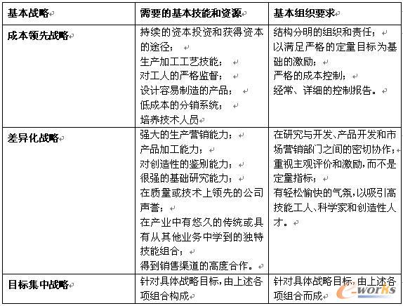 成功的降低成本、体现产品差异化和锁定目标市场需要不同的资源和技能以及组织上的配合。达到这些战略构想,也需要企业在内部管控方面有侧重的执行。所以,基本战略也意味着在组织安排、控制程序和创新体制上的差异,这些差异也对内部管控提出了不同的要求。